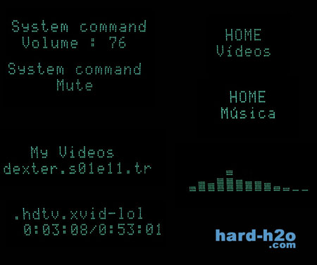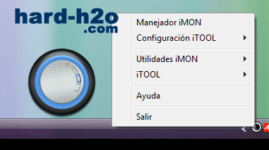 | Vista en detalle (Cont.):  | | La resolución del VFD es característica de este tipo de dispositivos, y la gran ventaja es que la nitidez es perfecta en cualquier nivel de iluminación de la habitación. Estas son algunas de las capturas que nos ofrece el display. |  | | En estas vemos información acerca de nuestro PC, como son el tipo de CPU, la dirección IP de nuestra máquina, el espacio libre y utilizada de una de nuestras unidades de disco o la velocidad de la red. |  | | También podemos configurar el dispositivo para saber la cantidad de datos que se han subido y bajado en nuestra máquina, la fecha y la hora, noticias de Internet, ... las posibilidades son infinitas. |  | | Podremos elegir en todo momento lo que queremos que salga por el display, previamente configurado mediante el software. |  | | Para ello, sólo debemos pinchar en el icono de la bandeja de sistema y elegir la opción de "Manejador iMon", con el que podremos configurar a nuestro gusto entre las diversas funcionalidades de las que disponemos. |  | Un práctico teclado virtual permite poner nombre fácilmente a cada tarea programada, seleccionando la tecla escogida a través del iMon y que podremos manejar perfectamente con el mando a distancia. |  | | Este es el aspecto del software de configuración, en este caso podremos modificar las opciones del "Ecualizador Gráfico". | | | |
