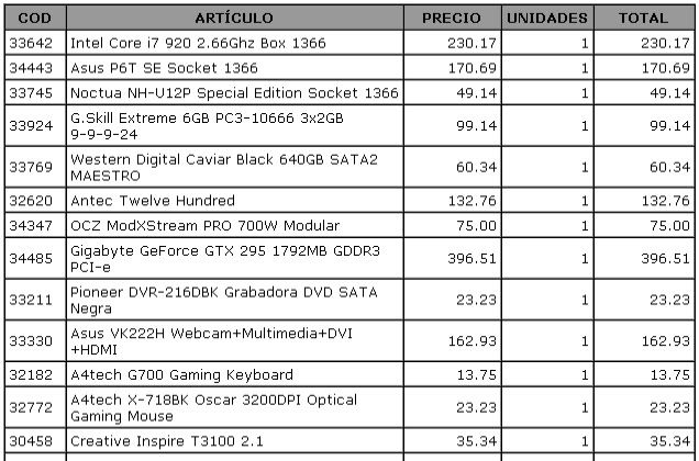 Estoy muy indeciso, no se si apostar por una plataforma i7, por una Nvidia GTX 295, por un RAID 0, o demás cosas por el estilo. Yo apostaría por la gráfica, por aquello de querer el ordenador para jugar, pero me cuesta mucho que el presupuesto no se dispare.