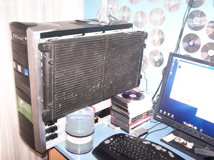 plano mas cercano del PC donde se aprecia lo tocho que es el radiador (tengo que ponerle las sujecciones a la tapa de la torre... eso que veis es momentaneo xD)