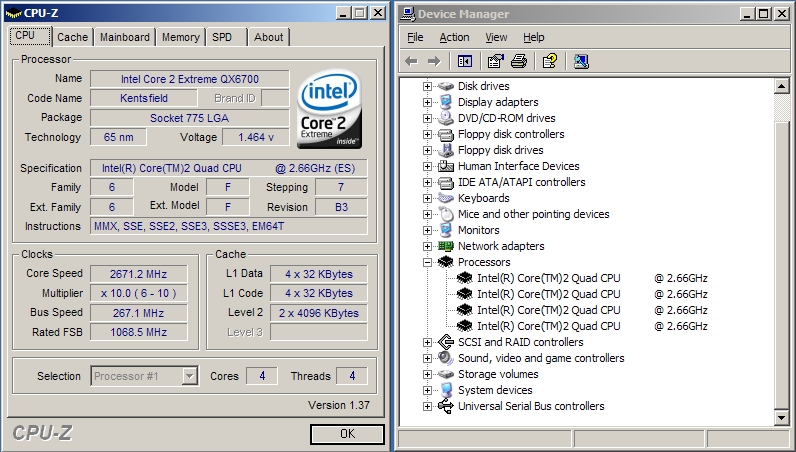 La cagada de este quad core no esta en los 4 nucleos sino en la forma en la que estan montandos. Comparten bus, con lo cual un bus de 266 quad pumped, en un core 2 duo es suficiente, pero para 2 procesadores con 2 nucleos embutidos se puede quedar corto. La otra "cagada" es que son 2 core 2 duo metidos "tal cual", al menos por lo que tengo entendido. Esto supondria que para colaborar entre ellos tirarian de bus, en vez de la cache compartida(una de los grandes logros de los core 2 duo), ya que solo esta compartida de 2 en 2 nucleos, es decir los 8 megas de cache de este procesador estan partidos en 2 de 4MB... me parece una chapuza la verdad, creo que es mejor opcion una placa con 2 sockets y cada socket con su propio bus.