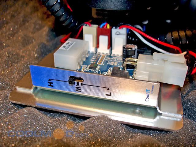 En cuanto al controlador en si es el encargado de recibir la alimentación del sistema y distribuirla a la bomba, las células peltier, el ventilador y en última instancia a la iluminación de fondo del logo de Coolit que dispone el frontal del Eliminator.