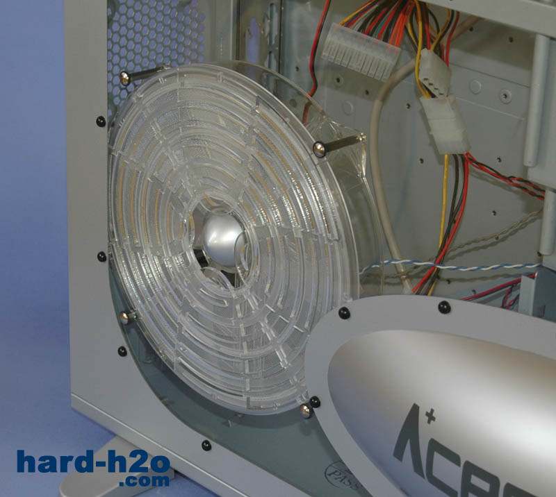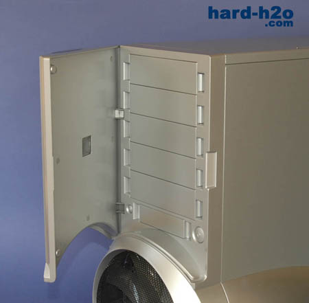El ventilador lateral sopla lateralmente a las bahías, si bien el aire no es debidamente canalizado hasta los discos y se desaprovecha parte de él, ya que el uso de una rejilla para evitar la entrada masiva de polvo obstaculiza la entrada de aire.