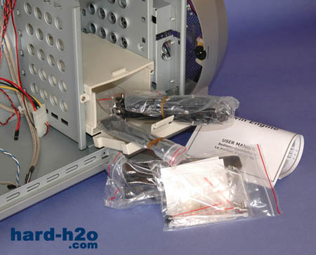 La caja blanca sirve para guardar accesorios, y de serie guarda los cables, tornillos y un pequeño manual. La caja en sí es antiestética pero una vez colocada la ventana lateral, no se verá; es altamente útil para guardar cables, herramientas, bahías, etc.