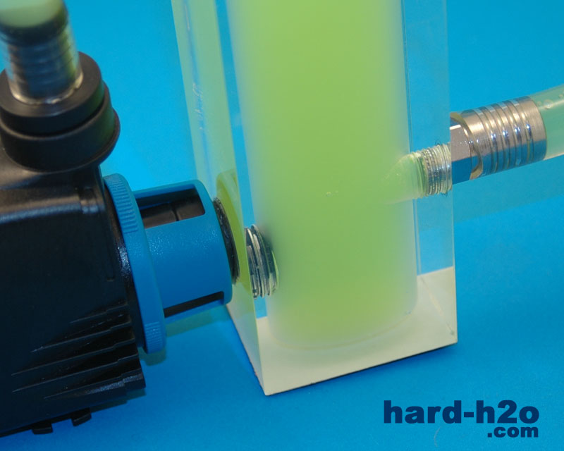 | Para su instalación, usaremos la famosa bomba Hydor L20 con un caudal volumétrico de 720 L/h. | La espiga roscada superior que va en la bomba arriba, está incluida en el pack del depósito. |