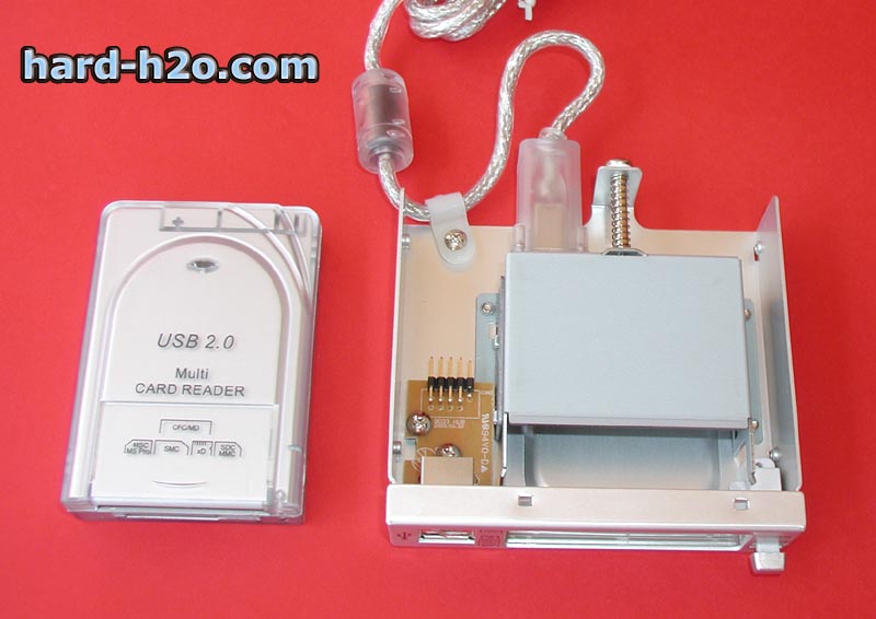 La mayoría de estos lectores o son externos USB, con lo cual ya tenemos otro cacharro encima de la mesa, o bien son en el formato de una disquetera, con lo que no podemos llevárnoslo con nosotros. Pues bien, el lector que os presentamos aúna las ventajas de ambos tipos de lectores, por un lado se coloca en una ranura de 3.5 externa y se conecta al USB mediante una de las placas de las tarjetas PCI, y además nos permite separar el modulo y conectarlo de forma independiente al USB, de forma que se convierte en una unidad transportable.