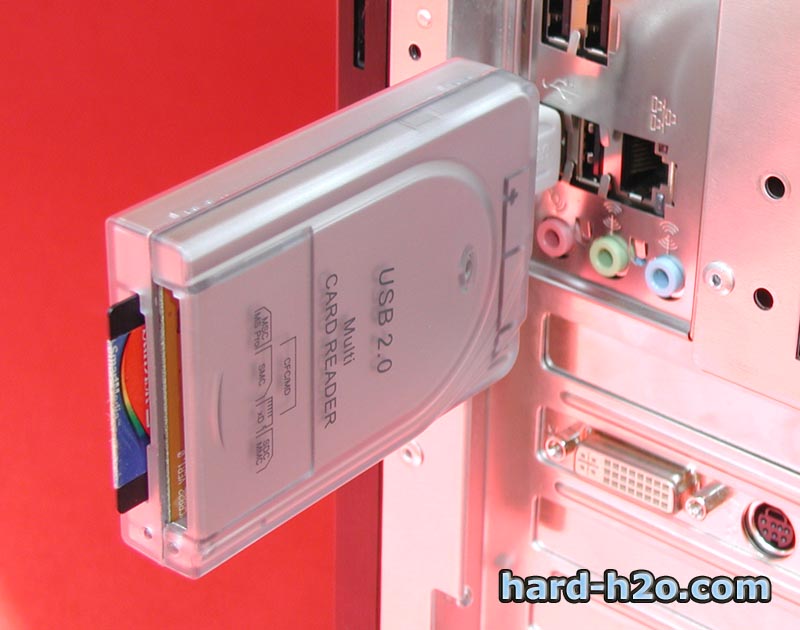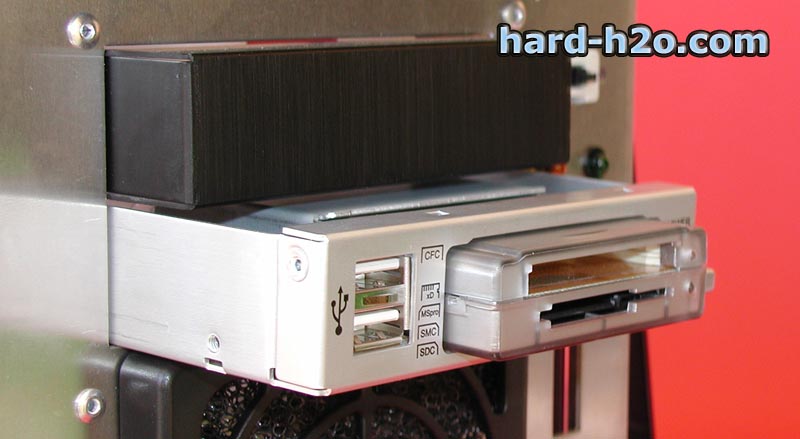 Esta unidad esta construida bajo soporte USB 2.0 con lo que nos garantiza una buena velocidad de transferencia de los datos. Un gran punto a su favor es el conector USB escondido en el modulo, que nos permite poder conectarlo en cualquier lugar y momento sin necesidad de cargar con los incómodos cables. Destacamos además que con este módulo aprovecharemos el hueco de 3 1/2 que solemos tener sin rellenar en nuestra torre y podremos tener 2 puertos USB frontales y un lector de tarjetas,