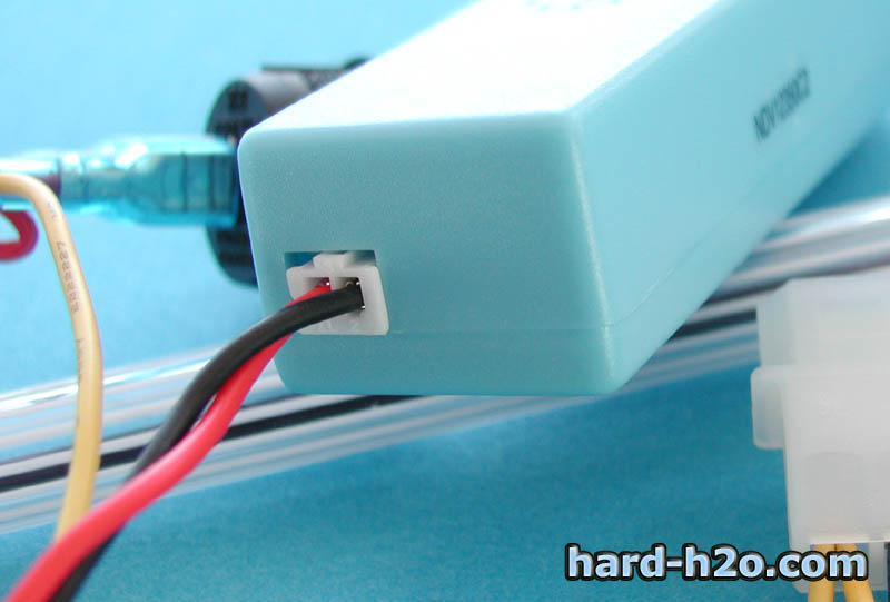 | En un extremo del inversor nos encontramos con dos conectores. Éstos son los conectores de salida hacia el cátodo. Con este único inversor, podemos alimentar a dos cátodos. | En el otro extremo del inversor, donde solo hay un conector, conectaremos la alimentación de 12 V hacia el inversor. Para completar la instalación, conectaremos a cualquier molex libre que quede en la fuente. Como el cableado del cátodo tiene un molex macho y uno hembra, no perdemos ninguna conexión para otros dispositivos. |