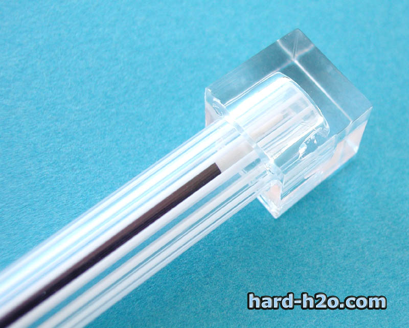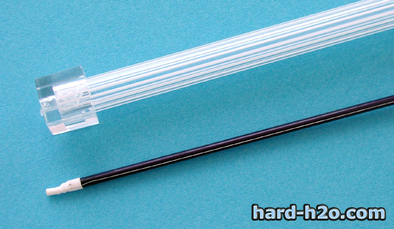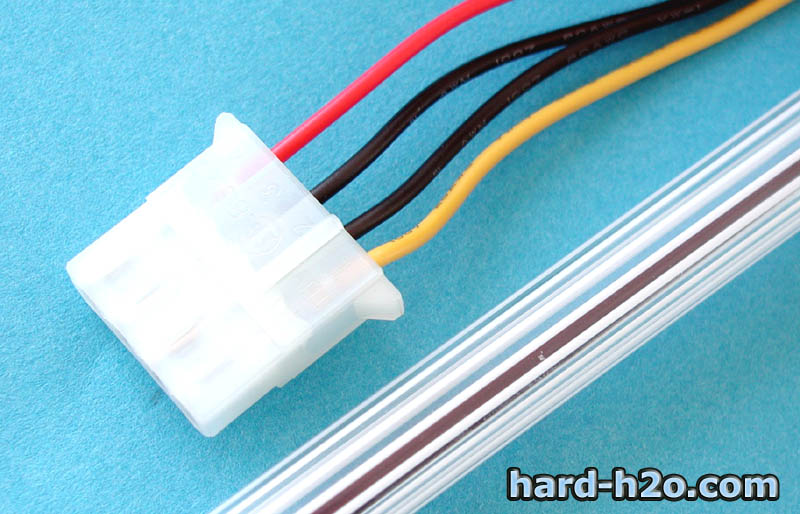 | El cátodo realmente esta compuesto del tubo de plástico que nos sirve de "recipiente" y el núcleo que realmente es el que emite la luz UV. | Aquí podemos apreciar su diámetro en comparación con un conector molex. Al ser tan estrecho lo podremos colocar casi en cualquier parte de nuestra caja. |