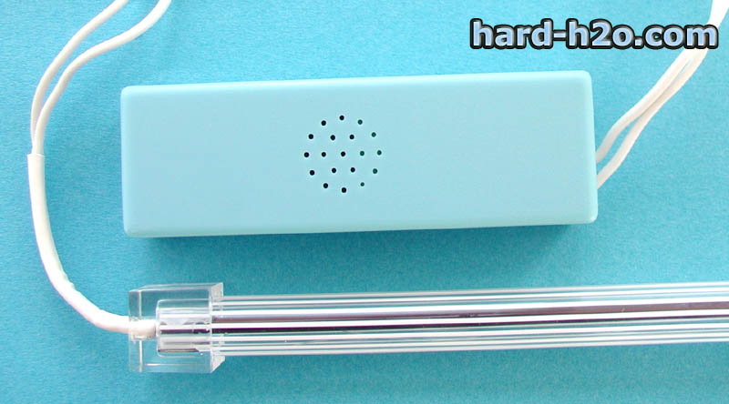 | La cajita azul es el inversor del cátodo. Por comparación seria como el cebador en un tubo fluorescente. Gracias a esos agujeros, se mejora la ventilación del mismo. | Imagen comparativa del inversor con respecto al cátodo. |