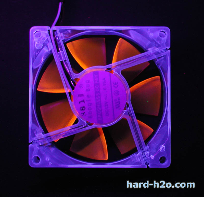 | Cables IDE reactivos a UV. | Rejilla de ventilador convencional pintada pintura reactiva UV. |