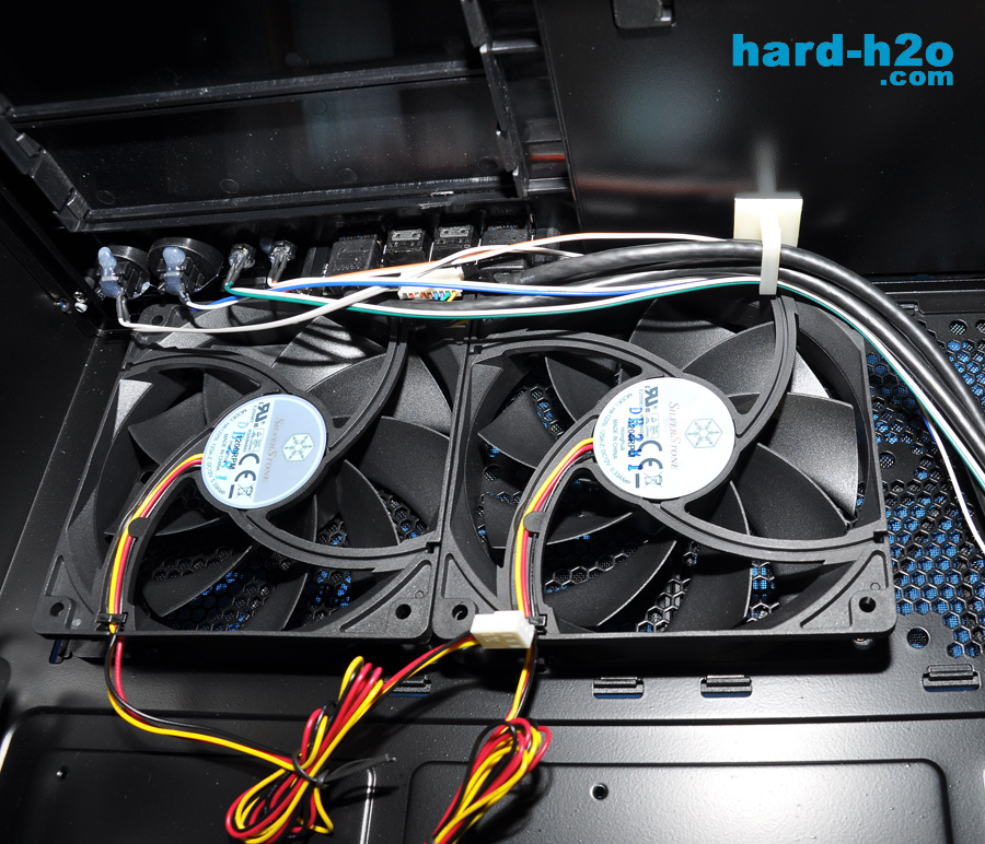 Estos dos ventiladores que se encuentran en el suelo de la Grandia son los encargados de expulsar el aire caliente que se genera en la zona de almacenamiento, CPU y tarjeta gráfica. Ambos con una medida de 12 cm y conector Molex de 3 pines.