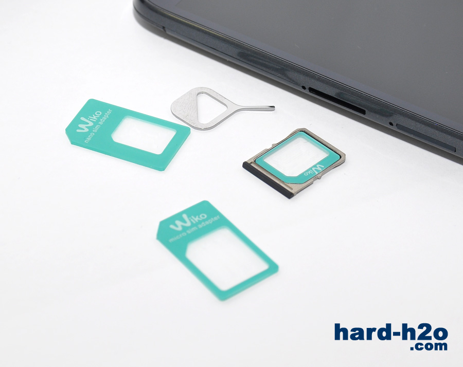 La ubicación de las micro SIM se encuentran en el lateral izquierdo. Se incluye una llave para poder extraer la bahía de la micro SIM y poder isertarla. Wiko incluye unas pequeñas plantillas para que los mañosos puedan recortar sus tarjetas SIM, sin tener que pedir un duplicado (y ahorramos unos euros).