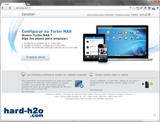Una vez arrancado el NAS (previa conexión a nuestro router o cablemodem), procedemos a su instalación; solo tenemos que acceder a la dirección http://start.qnap.com para comenzar este proceso.