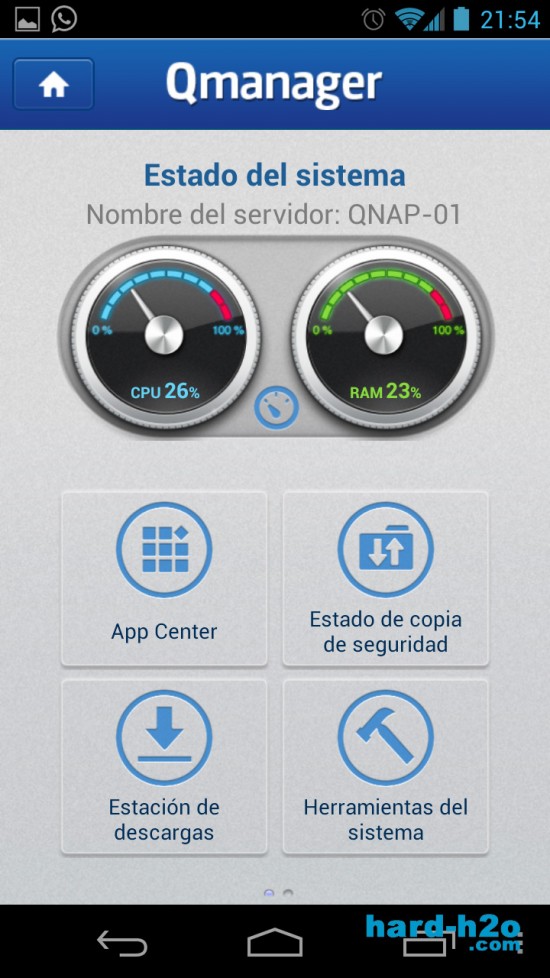 Tenemos acceso al estado del sistema, estación de descagas, app center y podremos comprobar el estado de la copia de seguridad que haya en curso.