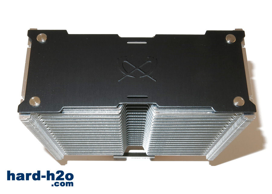 La estructura está compuesta por 56 aletas de aluminio de un grosor de 0,35 mm y un espaciado de 1,66 mm, algo denso lo que puede incidir en menor rendimiento en el paso de la corriente de aire generada por el ventilador.