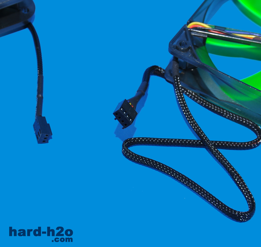 El cable de los ventiladores va perfectamente cubierto por una malla negra de tela. Los modelos con control PWM incorporan el típico conector de 4 pines; el otro, de 3 pines. Hay que destacar el bajo consumo, el cual no supera el vatio de potencia.